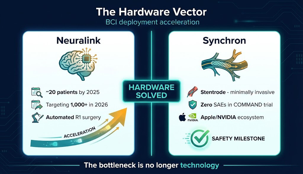 Synchron has achieved something Neuralink has not: a safety profile that makes commercialization plausible within the 2026-2027 window.